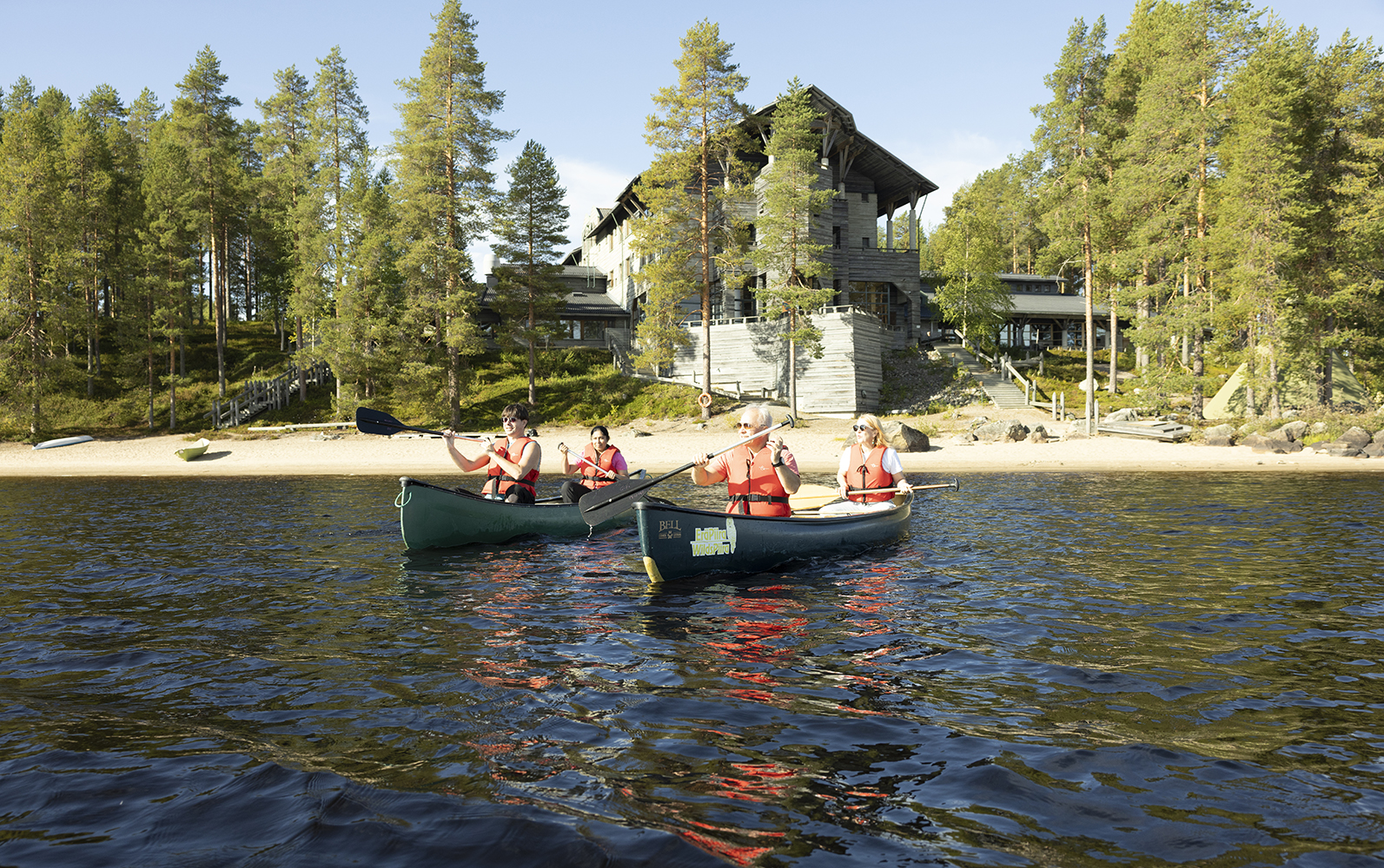 Geführte, entspannende Paddeltour auf dem See Lammasjärvi. Beginn direkt am Hotelstrand. Die Tour wird mit Kanus für 2-3 Personen durchgeführt.